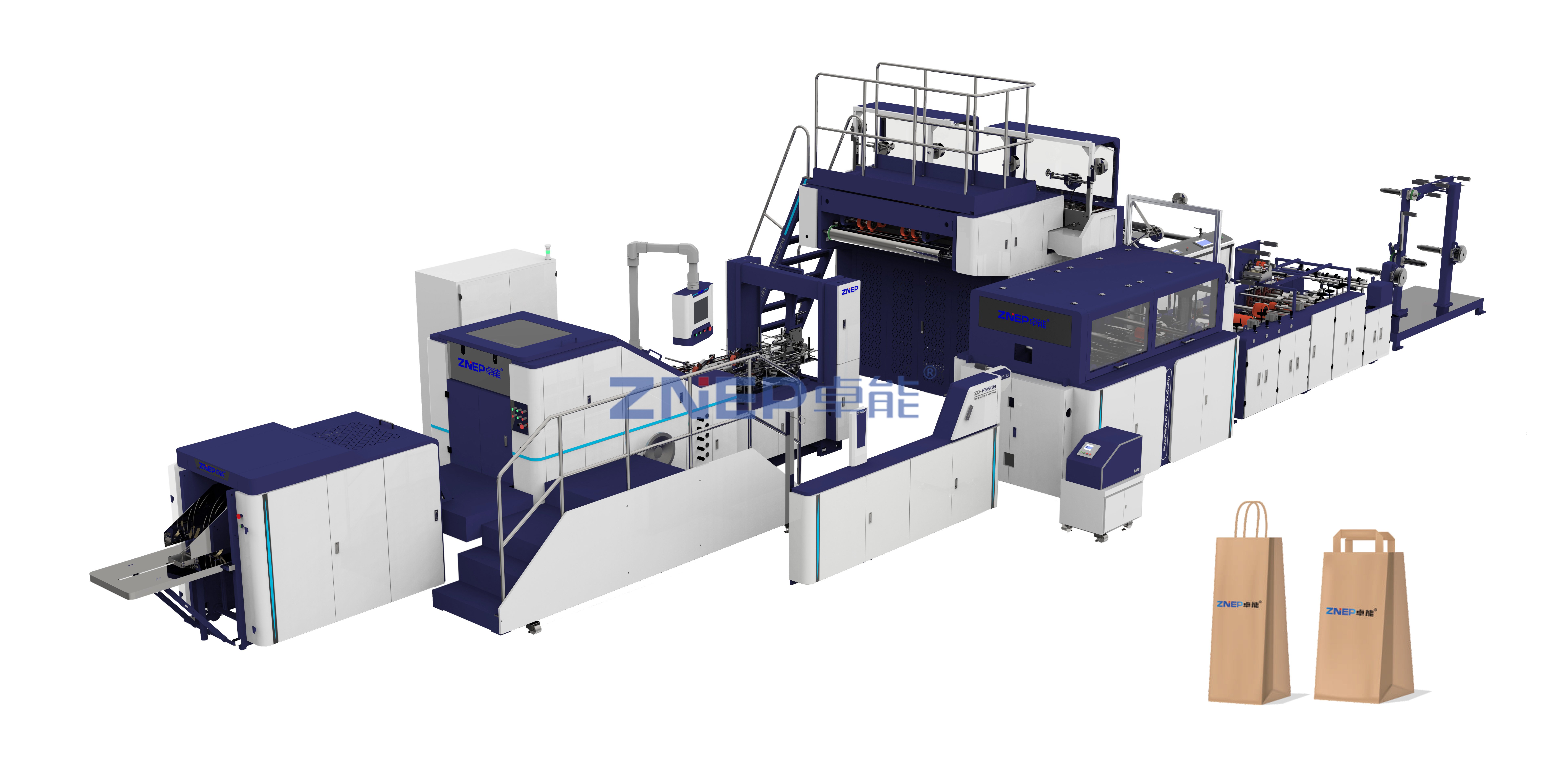 ZD-F230Q, ZD-F350Q ve ZD-F450Q, ZNEP markasının burgu (twisted/round) saplı kağıt poşet üretimi için geliştirdiği tam otomatik, sıfır model makinelerdir.